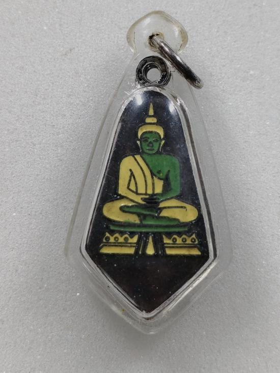 เหรียญพระแก้วมรกต เนื้อทองแดงลงยา ไม่ทราบที่ ด้านหลังมีรอยจาร |