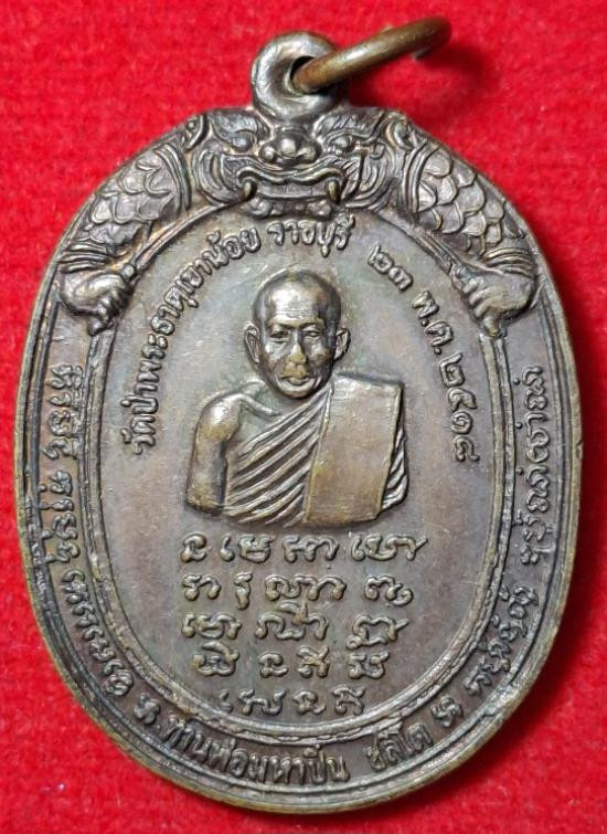 เหรียญที่ระลึกแจกงานศพ หลวงปู่เหมือน วัดโรงหีบ จ.ปทุมธานี ปี2502 หลังตอกเลข1 |