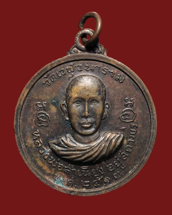 ***เหรียญกลม หลวงพ่อสำเนียง อยู่สถาพร วัดเวฬุวนาราม เนื้อทองแดง บางเลน นครปฐม ปี 13*** |