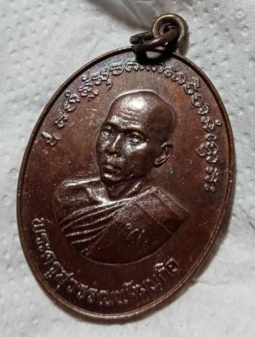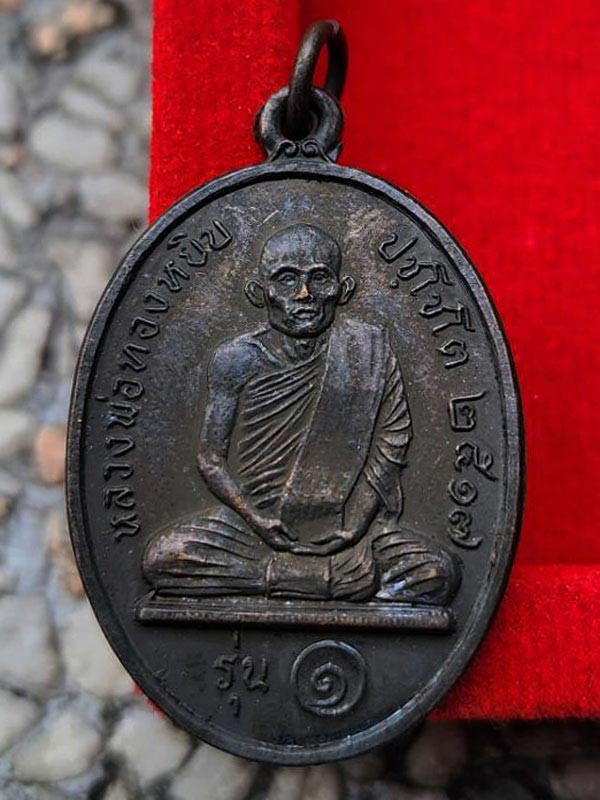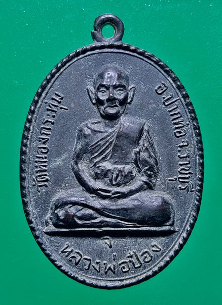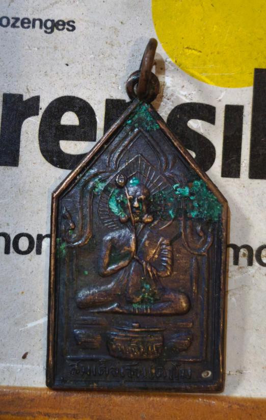 เหรียญหลวงพ่อน้อม วัดแพรกษา จังหวัดสมุทรปราการ ปี 2521 เนื้อทองแดงรมดำสภาพตามรูปราคาเบาๆ |