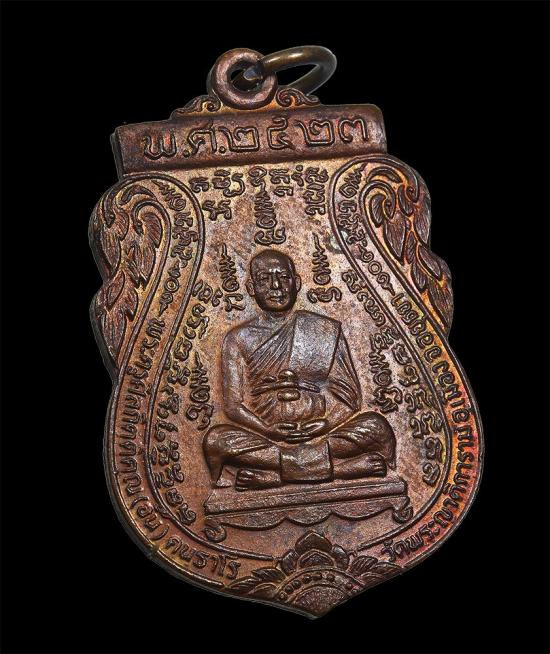 เหรียญหลวงพ่อตีบ วัดไชยราช จังหวัดประจวบคีรีขันธ์ ปี 2520 เนื้อทองแดงสภาพตามรูปราคาเบาๆ |