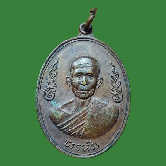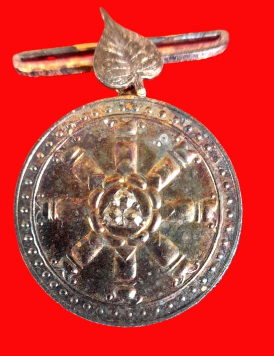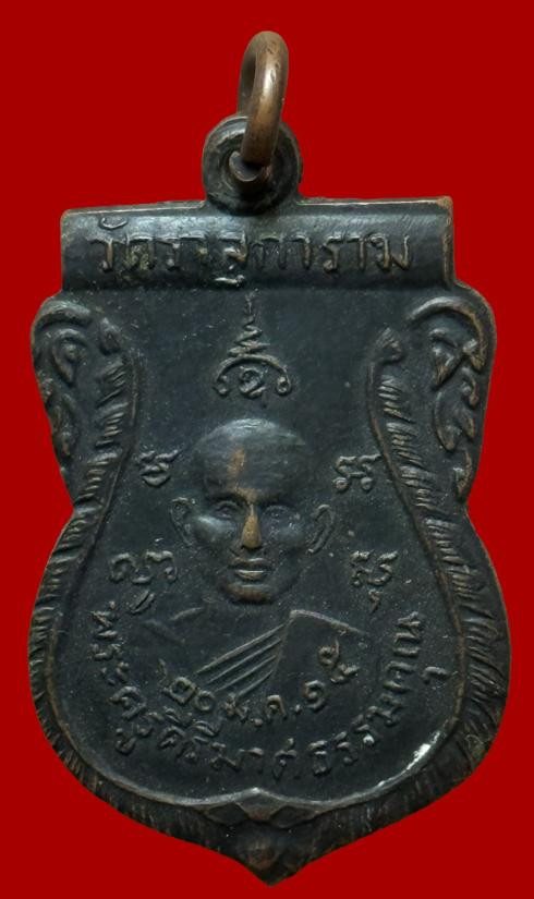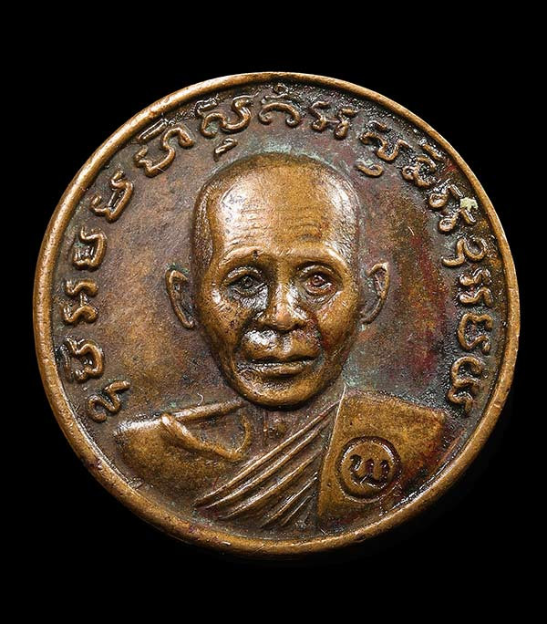 เหรียญจปร.หลวงพ่อแดง วัดเขาบันไดอิฐ บล็อกบาง เนื้อทองแดงรมดำ ผิวรุ้งเหลือบแดงเดิมๆ จ.เพชรบุรี ปี 2513 |