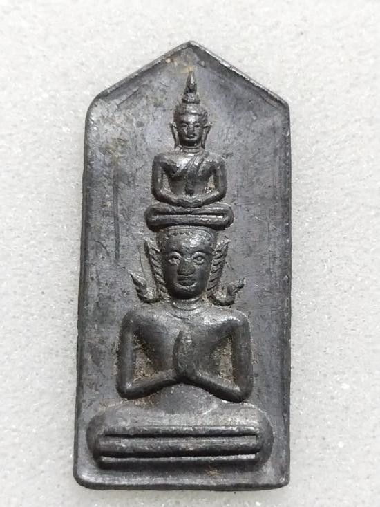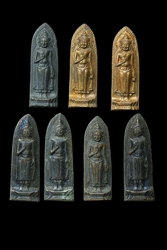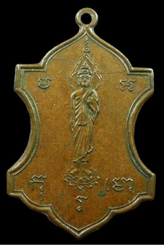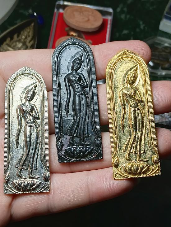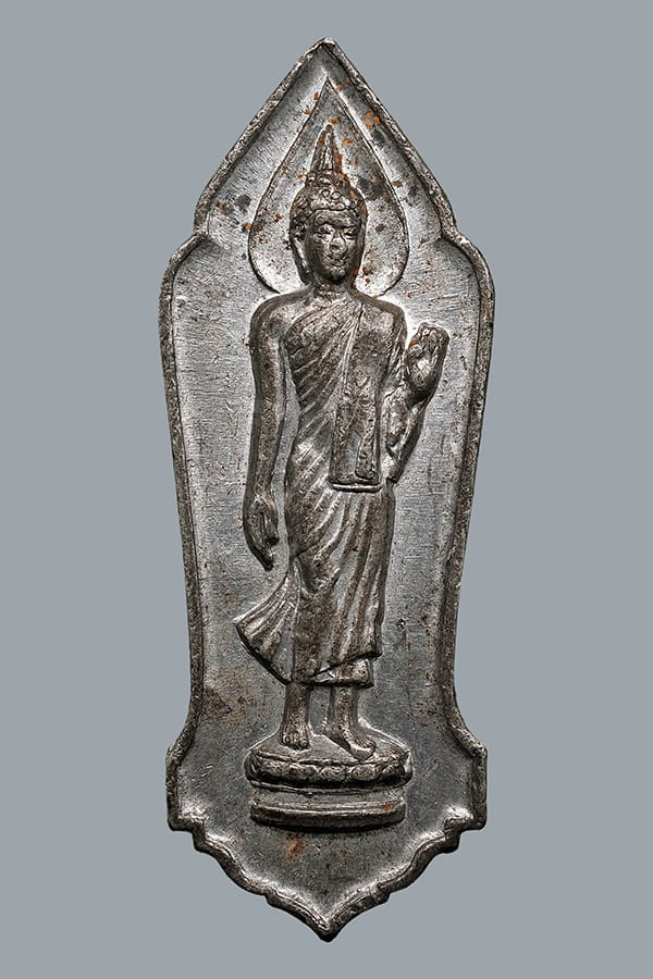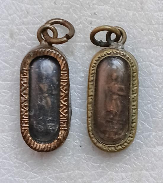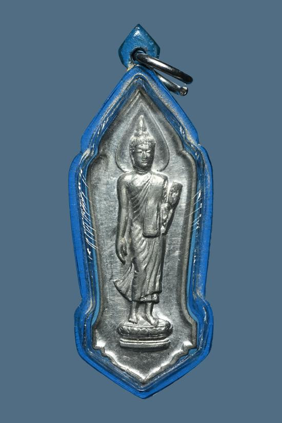 พระลีลา 25 พุทธศตวรรษ ปี 2500 พิมพ์จิ๋ว 2 หน้า เนื้อทองผสม หายาก เลี่ยมเดิม |