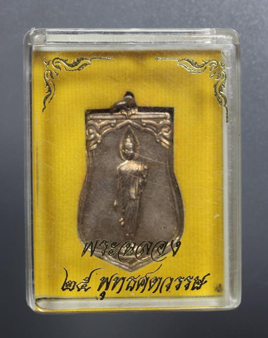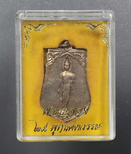 เริ่มที่ 100 *** เหรียญเสมา 25 พุทธศตวรรษ ปี 2500 เนื้ออัลปาก้า บล็อกแขนโต(ยันต์ห่าง) สวยเดิมกล่องเดิม |