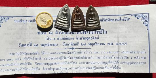 เหรียญหลวงพ่อพรหม กฐิน ปี 55 สำนักรัศมีพรหม อุตรดิถ์ จำนาวนสามองค์ พระผง หนึ่งองค์ |