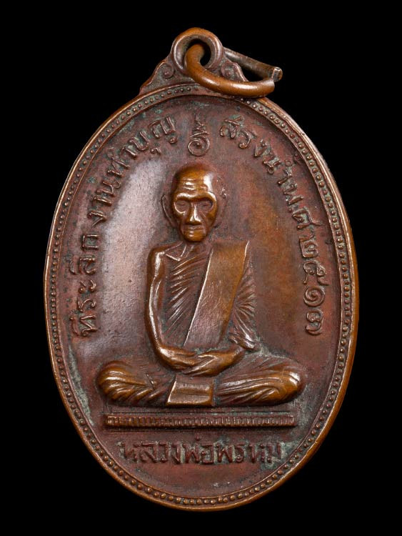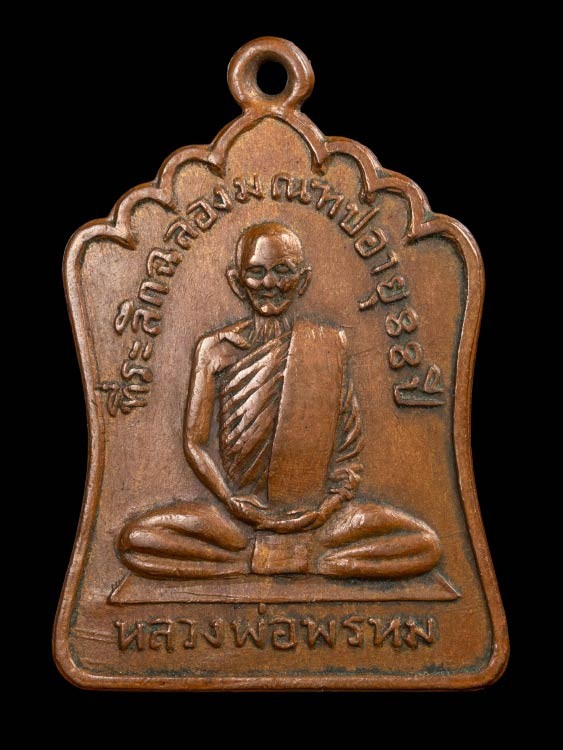 รูปเหมือนหลวงพ่อพรหม วัดช่องแค พิมพ์รัดประคต เนื้อทองแดง ผิวไฟ ปี2515 จ.นครสวรรค์ พร้อมบัตร |