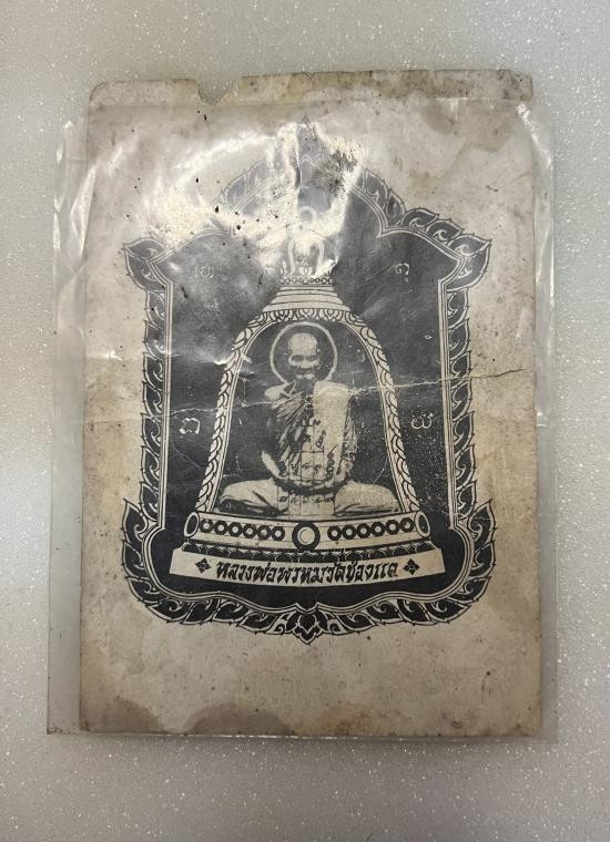 เคาะเดียวแดง รูปถ่ายแววนกยูง หลวงพ่อเดิม วัดหนองโพ เนื้อกระดาษปั๊มยันต์ มาพร้อมบัตรรับรองนิตยสารท่าพระจันทร์ |