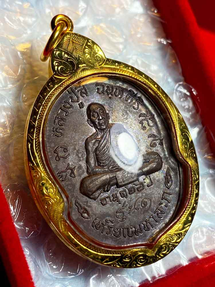 เหรียญกนกข้างหลังโรงเรียญ หลวงพ่อโอด วัดจันเสนปี 2519 สภาพสวยเดิมพร้อมเลี่ยมใช้ |