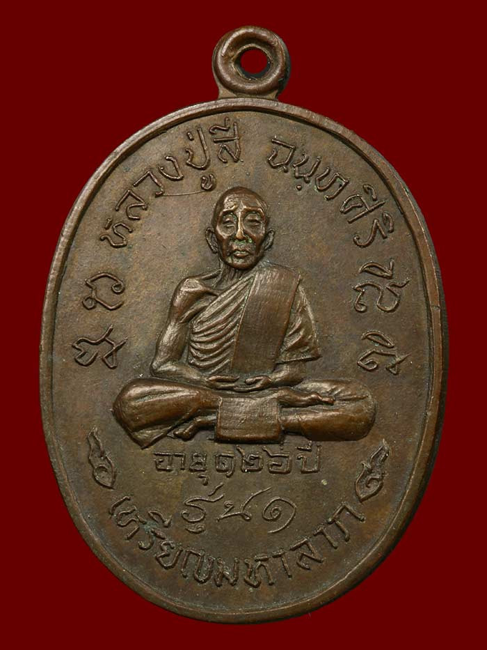 เหรียญหลวงปู่สี วัดถํ้าเขาบุญนาค รุ่นอายุยืนเต็มองค์ ปี2517 เนื้อทองแดง |