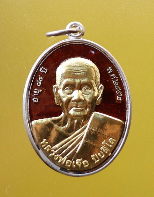 "เคาะเดียว" เหรียญแซยิด ๘๔ ปี เนื้อเงินลงยาหน้าทองคำ หลวงปู่เจือ วัดกลางบางแก้ว หมายเลข ๑๖ สวยๆ กล่องเดิม พร้อมบัตรG-pra |