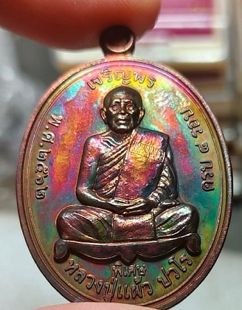 เหรียญเหนือดวง มหาบารมี หลวงปู่แผ้ว วัดรางหมัน เนื้อเงินลงยาราชาวดี หน้าทองคำ หมายเลข 447 สภาพสวยแชมป์ พร้อมบัตรรับรองครับ |