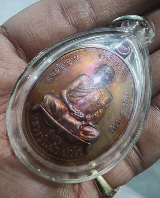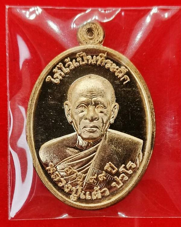 !!! 100 เท่านั้น !!! เหรียญเจริญพรบน หลวงปู่แผ้ว เนื้อทองแดง เลี่ยมพลาสติกพร้อมใช้ |