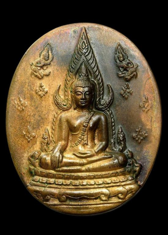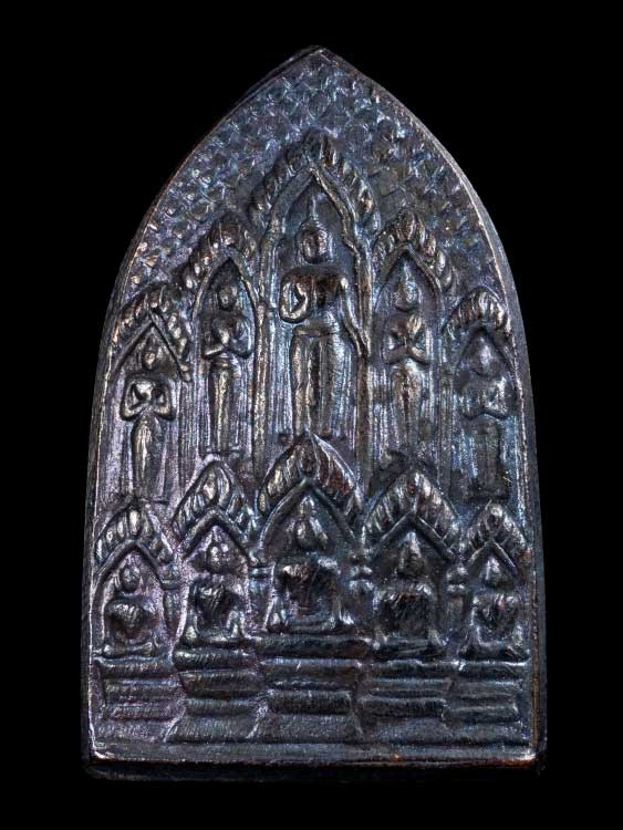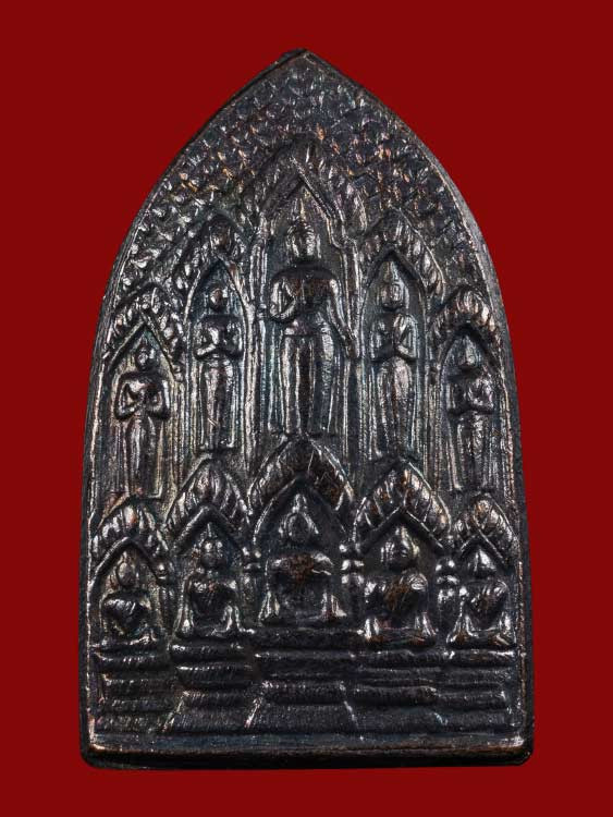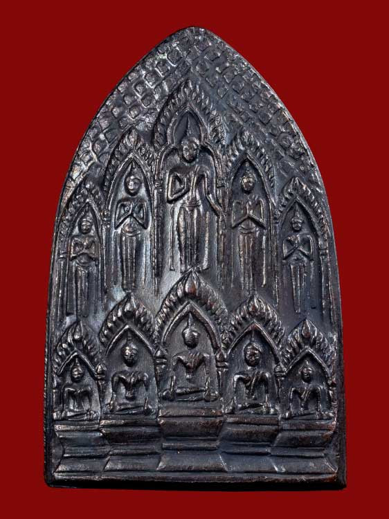 พระปางนาคปรก พระประจำวันเสาร์หลวงพ่อแช่ม วัดตาก้อง พิมพ์ใบมะขาม เนื้อตะกั่ว ปี2497 จ.นครปฐม |