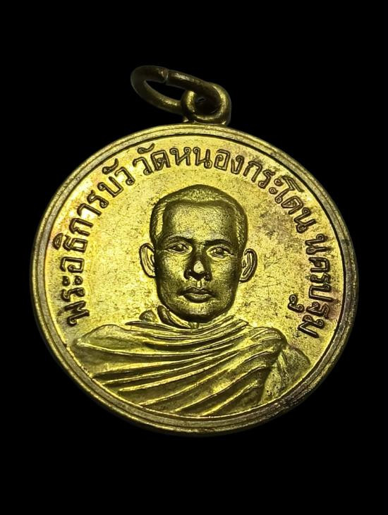<< บัตรสภาพสวย >> เหรียญกลมเล็ก หลวงพ่อเงิน วัดดอนยายหอม (( หายาก กะไหล่ทองเดิม แจกกรรมการ )) ออกวัดพระงาม ปี 2505 |