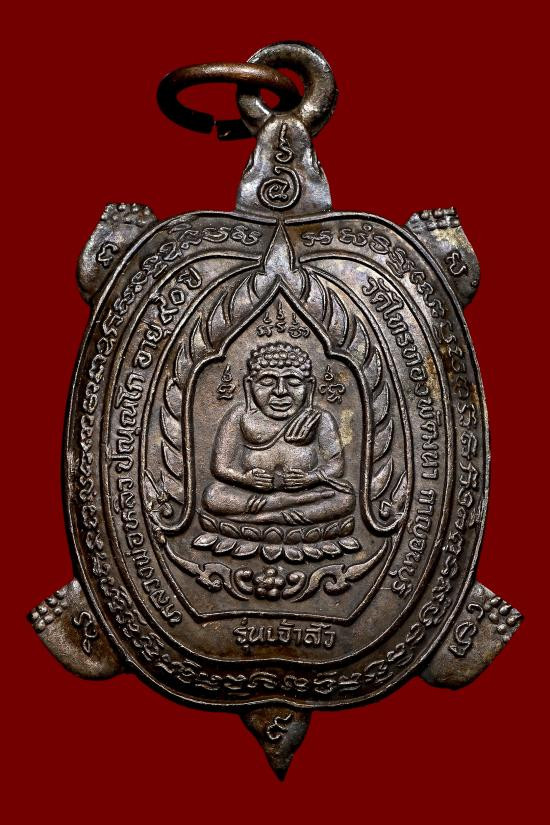 เคาะเดียวแดงเหรียญจำปีกำแพงแสนนั่งเต่า หลังท้าวเวสสุวรรณ รุ่นแรก รุ่น ปั่นเงิน ปั่นทอง หลวงปู่ปั่น กวิสฺสโร วัดหนองกระทุ่ม จ.นครปฐม ปี 2565 เนื้อทองแดงรมดำ เลข๑๕๔๙ ซีลเดิม พร้อมกล่องเดิม |