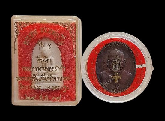 เหรียญหลวงพ่อเปิ่น วัดบางพระ รุ่นฉลองพัดยศเจ้าคุณพระอุดมประชานาถ ปี 2537 ตอกโค๊ด หมายเลข ๓๘๗๓ เนื้อเงิน น้ำหนัก 12.79 กรัม |