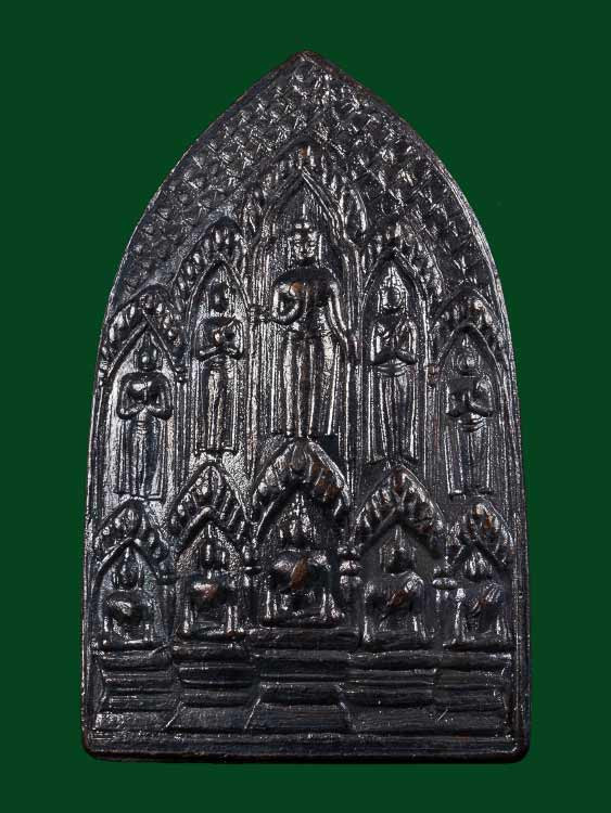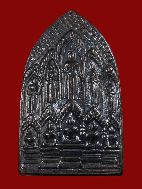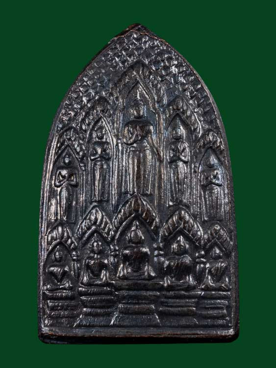 พระสมเด็จปรกโพธิ์ หลวงพ่อแช่ม วัดดอนยายหอม พิมพ์หลังแบบพระปิดตาพุทโธ เนื้อผงน้ำมันผสมว่าน |