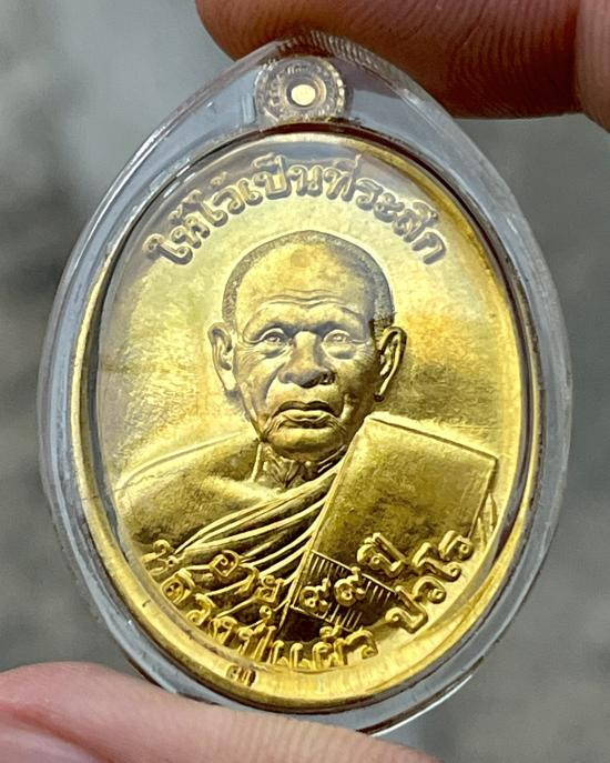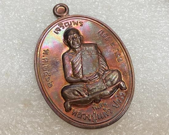 หลวงปู่แผ้ว ปวโร วัดรางหมัน เหรียญเจริญพรบน วาระ ๘ รอบ (เนื้อทองเเดงผิวรุ้ง) |