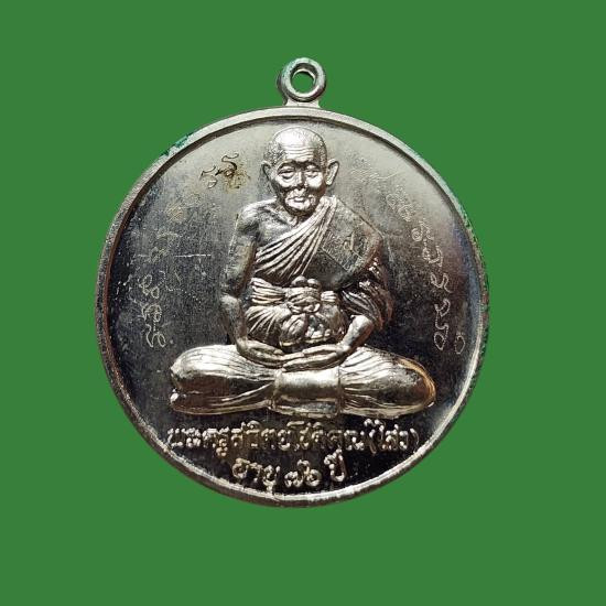 เคาะเดียวเเดง เหรียญนั่งพานเนื้อเงินหลวงพ่อเปิ่น วัดบางพระ นครปฐม รุ่นฉลองอายุครบ 6 รอบ ปี2537 |