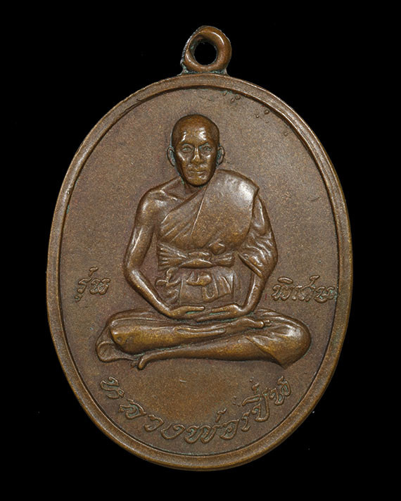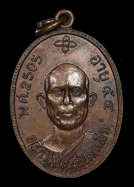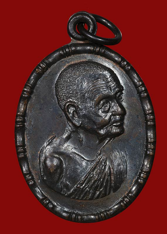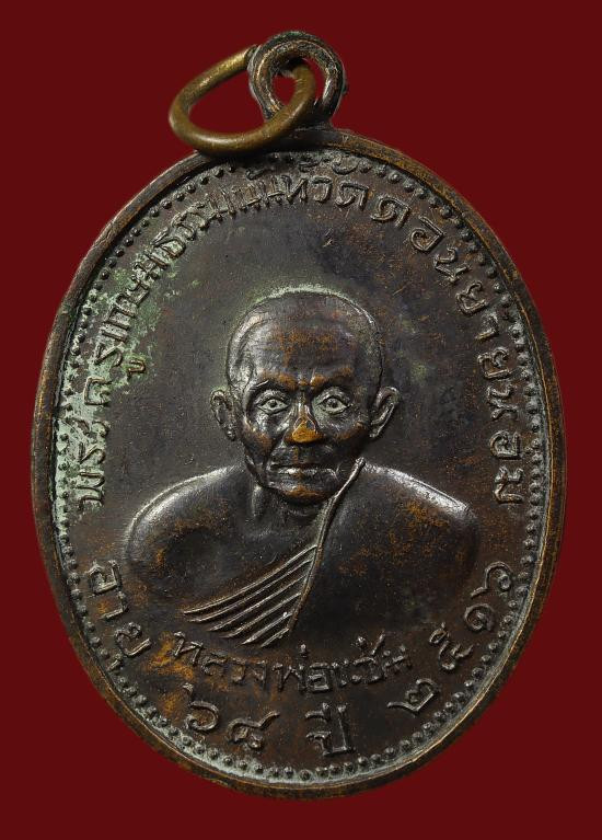 เหรียญหลวงพ่อแช่ม ไข่ปลาหน้าตรง ๖๘ ปี พ.ศ.2516 วัดดอนยายหอม ทองแดงรมดำ แดง120 |