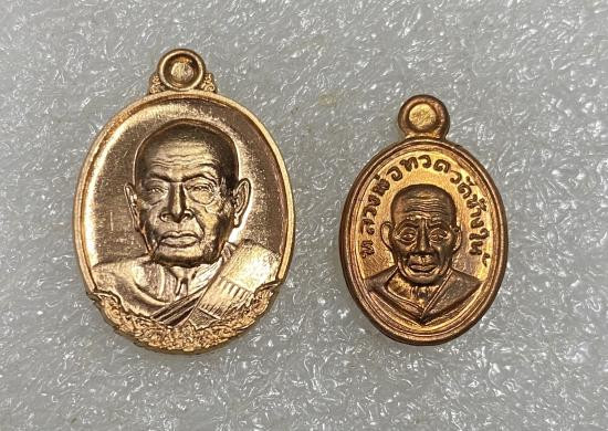 หลวงปู่แผ้ว ปวโร วัดรางหมัน เหรียญเม็ดแตงหลวงปู่ทวดหลังหลวงปู่แผ้ว (เนื้อทองเเดง) |