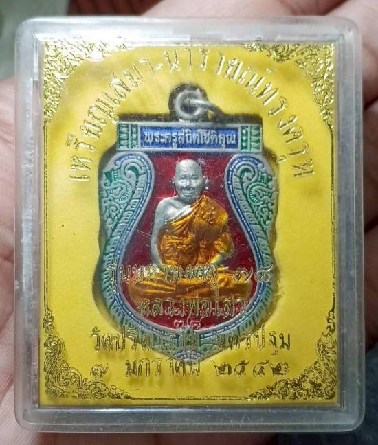 เคาะเดียวแดง เหรียญพัดยศ เนื้อเงิน หลวงพ่อพลู วัดไผ่ล้อม กล่องเดิม |