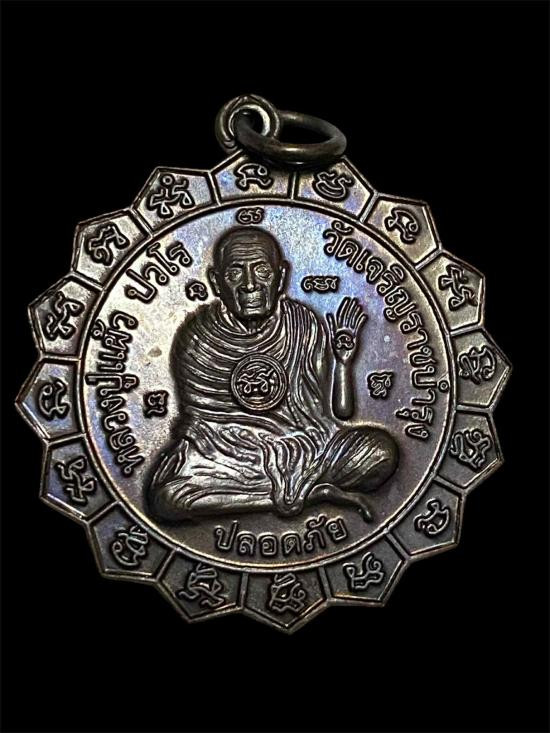 เหรียญ16จักร(ปลอดภัย)หลวงปู่แผ้ว ปวโร มีตอกโค๊ดด้านหลัง ออกวัดเจริญราษฎร์บำรุง(หนองพงนก) นครปฐม ปี2550ไม่มีกล่องคับ |