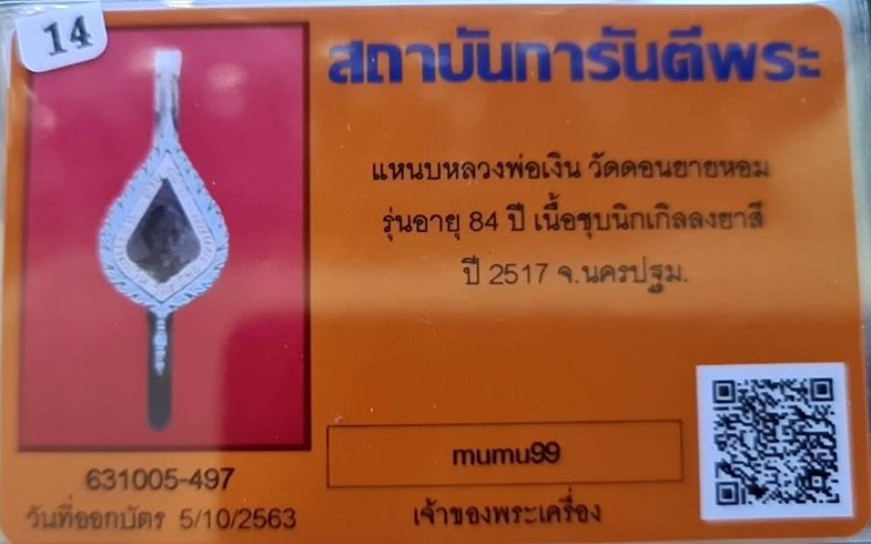 หลวงปู่หลิว วัดไร่แตงทอง รุ่นพิเศษบูรณะพระราชวังสนามจันทร์ เนื้อเงิน |