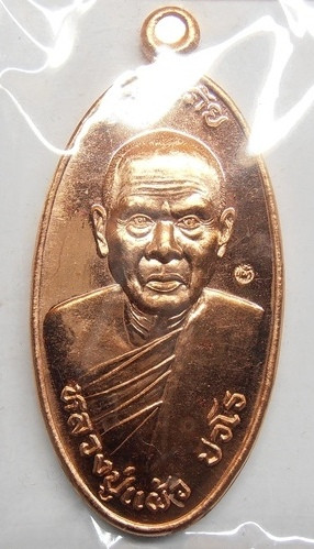 เหรียญรุ่น 2 ทำบุญครบรอบ 80ปี หลวงปู่แผ้ว ปวโร วัดกำแพงแสน เนื้อทองแดง ปี2545 |