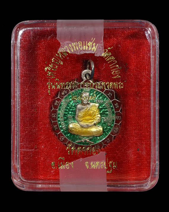 วัดใจเหรียญเจ้าสัวห่วงเชื่อม เจ้าสัวสยาม หลวงพ่อคง วัดกลางบางแก้ว เนื้อทองชนวน ปี 55 หมายเลข 826 สร้าง 2,555 เหรียญ เลี่ยมพร้อมใช้ ไม่มีกล่อง |