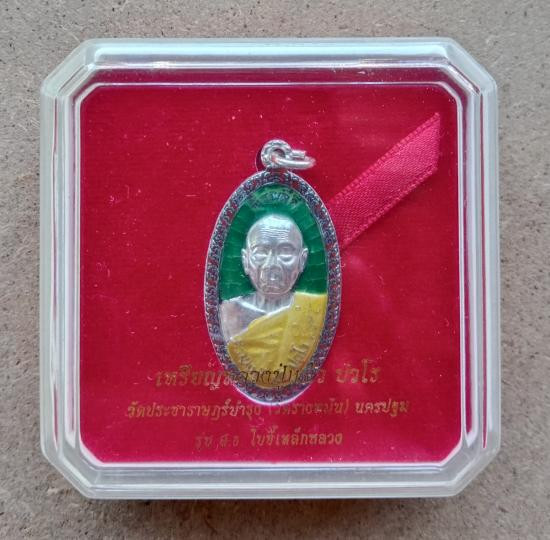 เหรียญใบขี้เหล็กหลัง สธ. เนื้อเงินลงยา หลวงปู่แผ้ว วัดรางหมัน อ.กำแพงแสน จ.นครปฐม ปี2556 หมายเลข1795 พร้อมกล่อง ตามรูป |