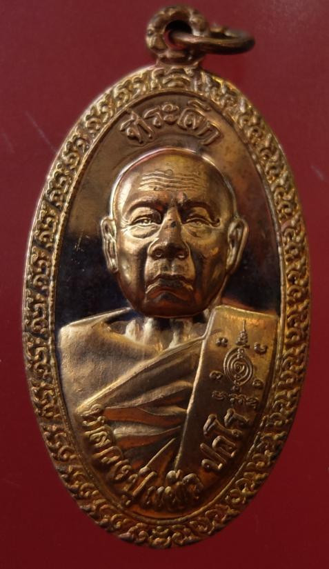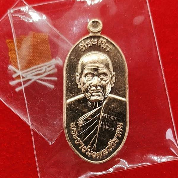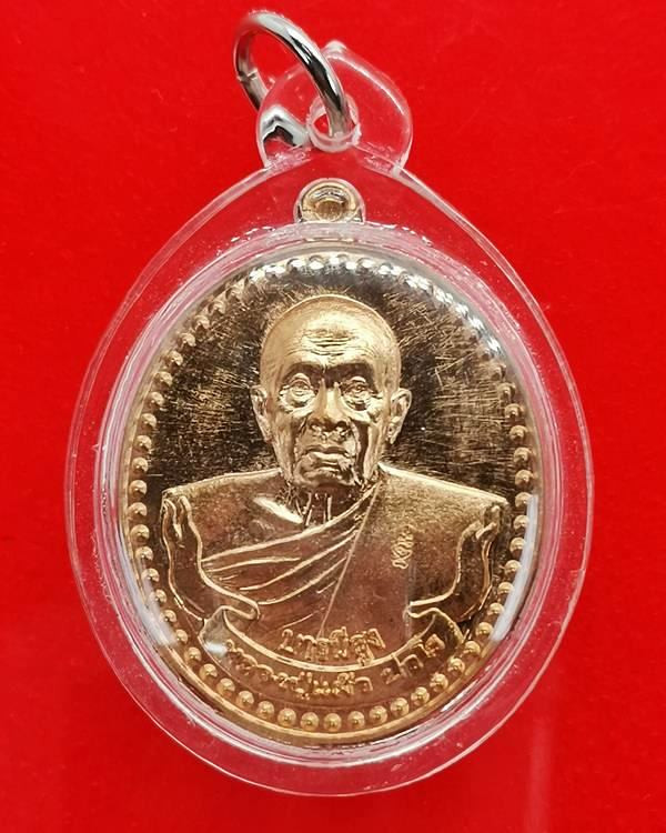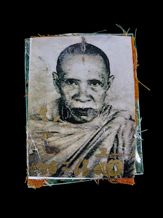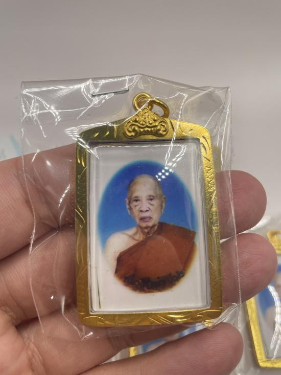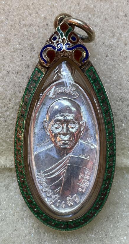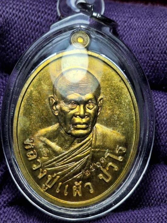 เหรียญบารมีสูง หลวงปู่แผ้ว ปวโร วัดรางหมัน จ.นครปฐม เลี่ยมใส่จีวรสายสิญจน์ |