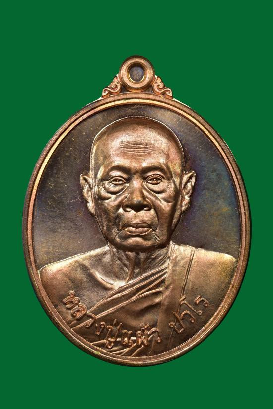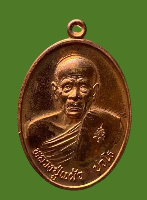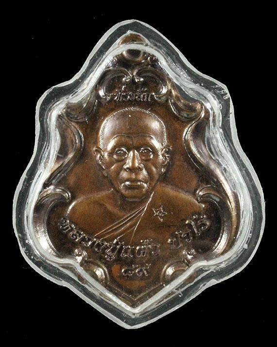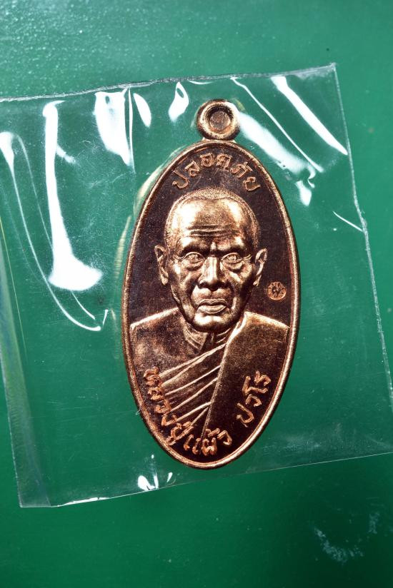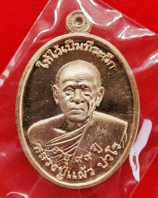 เหรียญกันภัยปั๊มตัดชิด 98 ปี หลวงปู่แผ้ว วัดรางหมัน ปี2563 เนื้อทองแดง มีกล่อง แดงเคาะแรก |