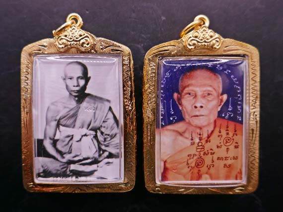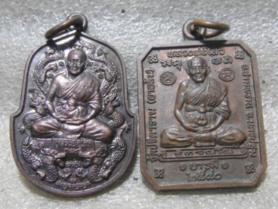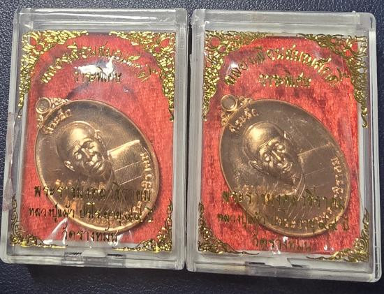 แพ็คคู่ 2องค์ หลวงพ่อวัดไร่ขิง ประมาณปี1กว่า เหรียญเนื้อทองแดง พิมพ์เล็ก กับเนื้อผงทาทอง เลี่ยมเก่าๆใจ |