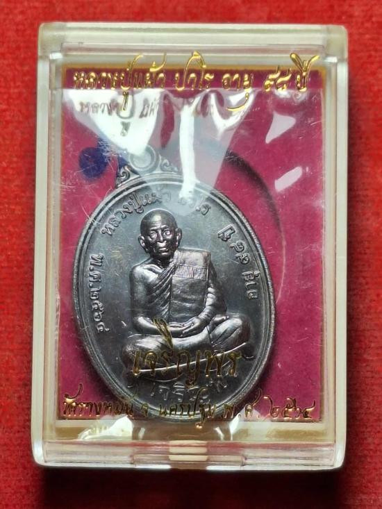 K905)..เหรียญเสมา รุ่นแรก หลวงปู่มหาเจิม วัดสระมงคล จ.นครปฐม ปี2549 สวยๆ กล่องเดิมๆ (ด้านหลังติดจวรและเกศา) |