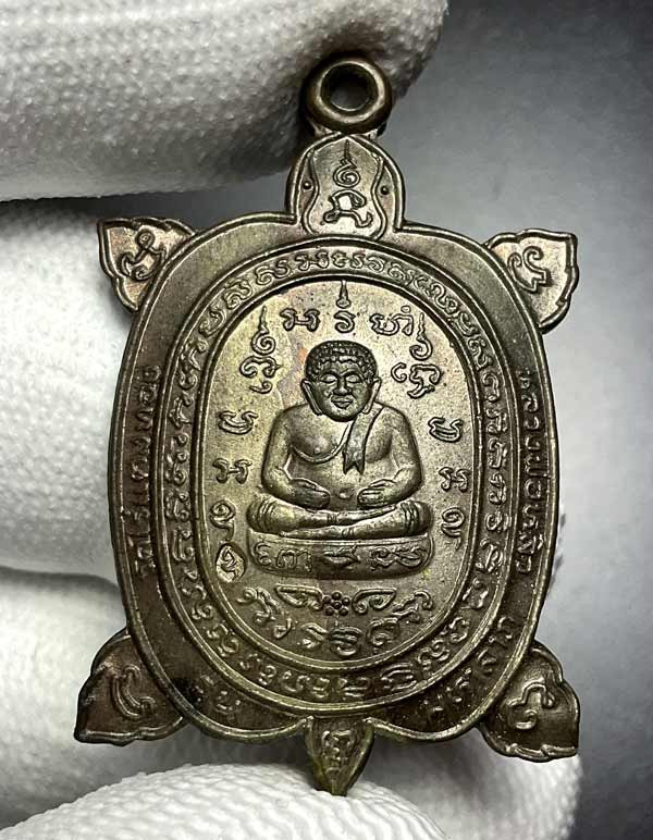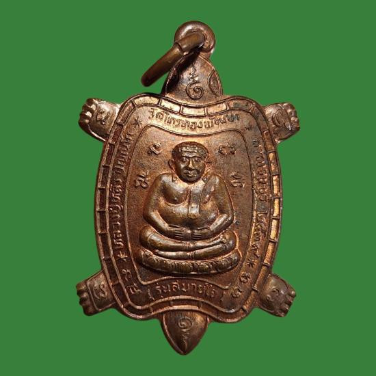 (((วัดใจ)))เหรียญพญาเต่าเรือน หลวงปู่หลิว วัดไร่แตงทอง รุ่นสุขใจ เนื้อนวะโลหะ ปี 2537 บล็อคมีบอล สภาพสวยเดิม+บัตรรับรองพระแท้ |