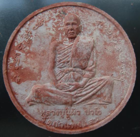 เหรียญรุ่น 2 ทำบุญครบรอบ 80ปี หลวงปู่แผ้ว ปวโร วัดกำแพงแสน เนื้อทองแดง ปี2545 |