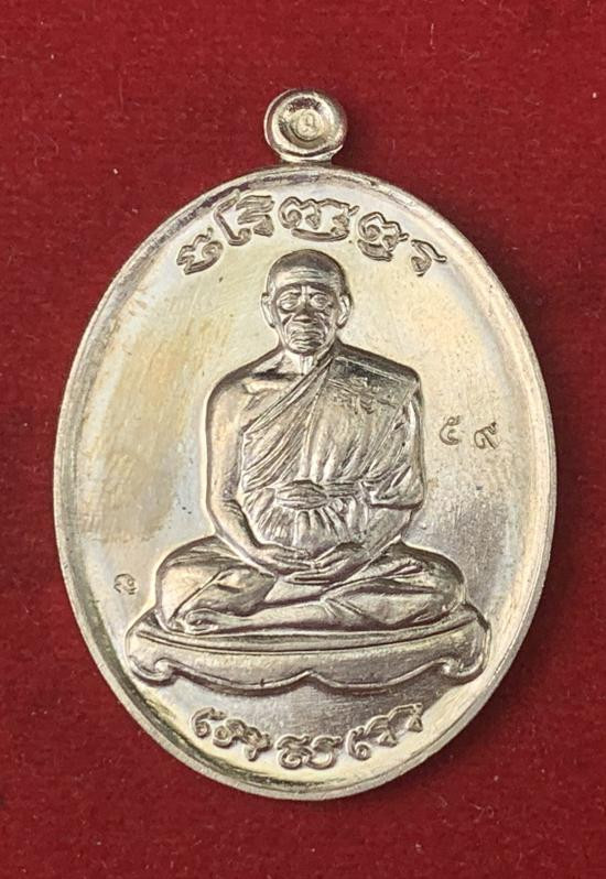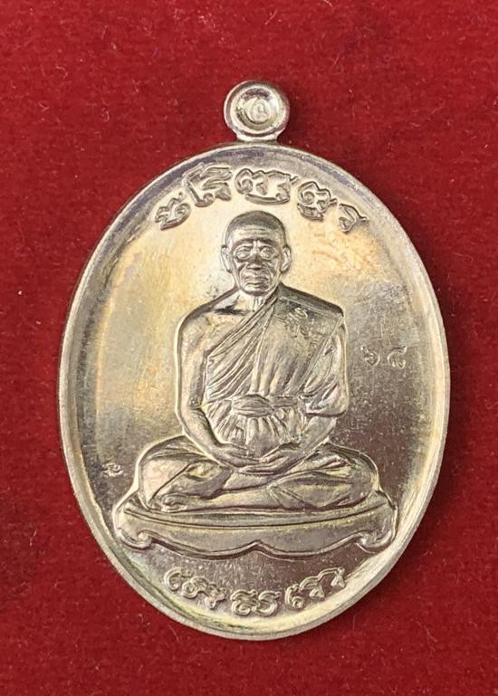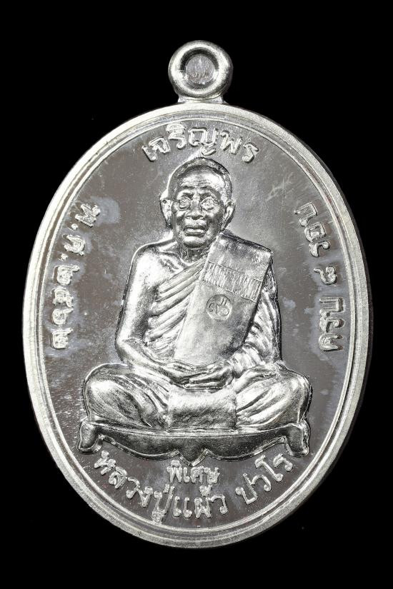 เหรียญเจริญพรบน หลวงปู่แผ้ว ปวโร ปี 62 เนื้อเงิน # 2577 พร้อมกล่อง+บัตรGครับ |