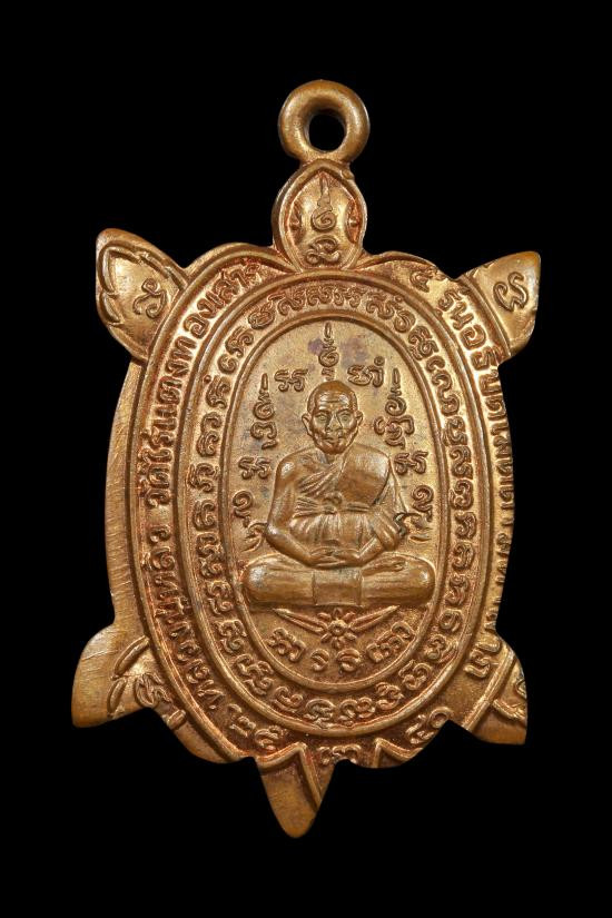 ใบขี้เหล็ก รุ่นแรก หลวงปู่แผ้ว เนื้อทองแดง ปี 2547 ผิวสวยดำๆเดิมๆ พร้อมบัตรรับรอง |