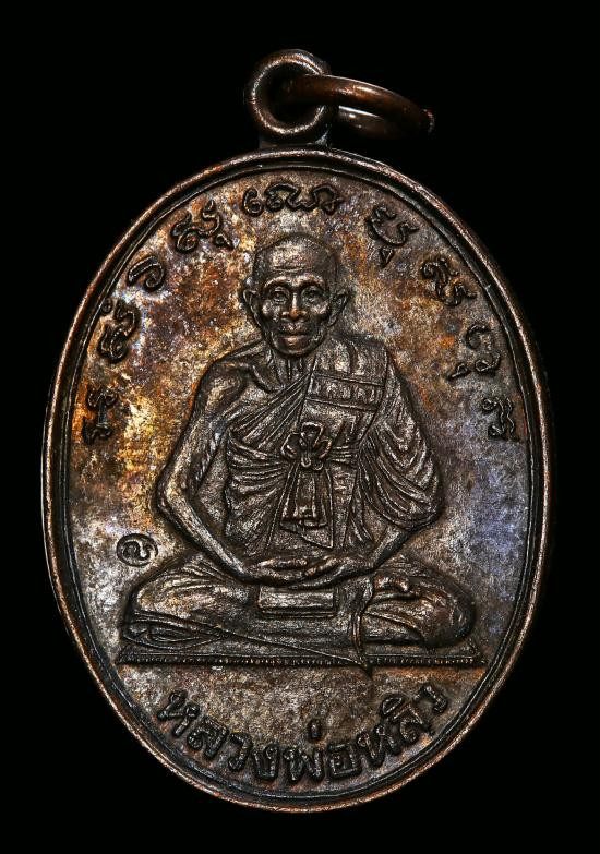 เหรียญหลวงปู่เพิ่ม วัดกลางบางแก้ว จ.นครปฐม รุ่นเททอง พิมพ์หน้าตรง ปี 2517 เนื้อทองแดงรมดำ |