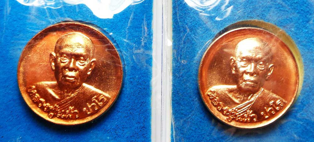 หน้าเสือ หลวงพ่อน้อย วัดธรรมศาลา รุ่นสร้างสะพาน สองหน้า ปี 2510 เนื้อทองแดงเถื่อน ผิวไฟ |