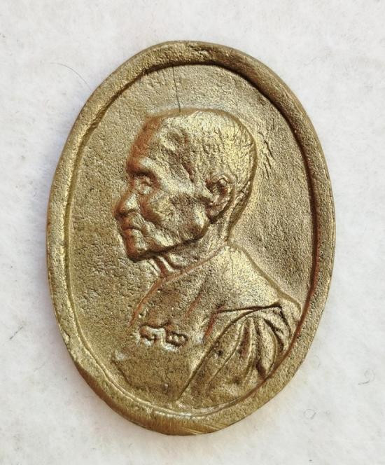 เหรียญหล่อรูปเหมือนหันข้าง หลวงพ่อแช่ม วัดดอนยายหอม เนื้อโละผสม สร้างในวาระ อายุ ๘๒ปี พ.ศ.๒๕๓๐ กล่องเดิม องค์ที่ 2 |