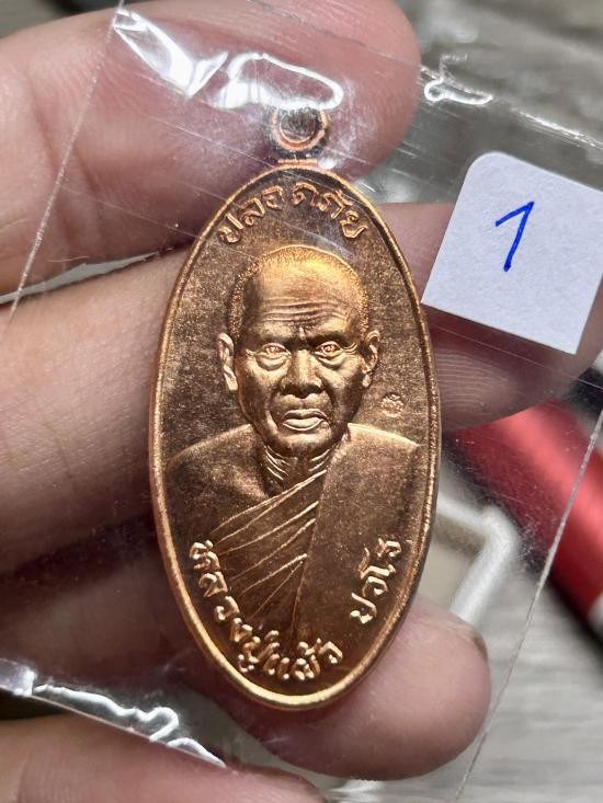 !!! 100 เท่านั้น !!! เหรียญเจริญพรบน หลวงปู่แผ้ว เนื้อทองแดง เลี่ยมพลาสติกพร้อมใช้ |