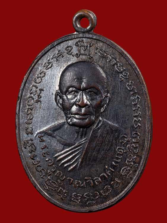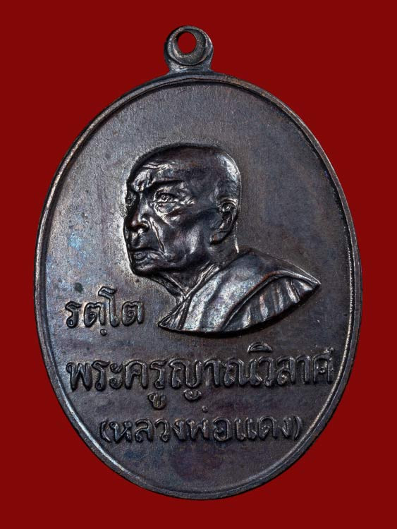 เหรียญหลวงพ่อแดง วัดเขาบันไดอิฐ รุ่นแม่ทัพ ปี 2511 เนื้อทองแดงรมดำ พิมพ์ไม่มีดาว |