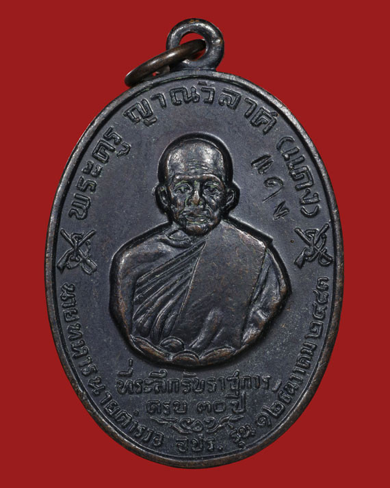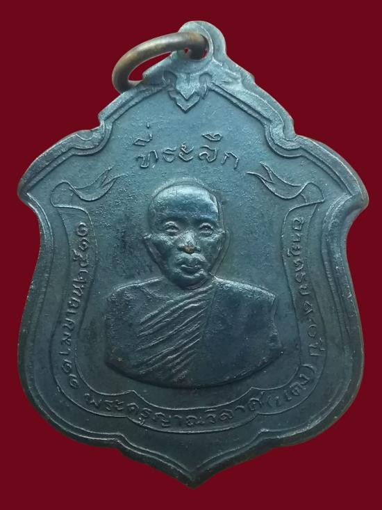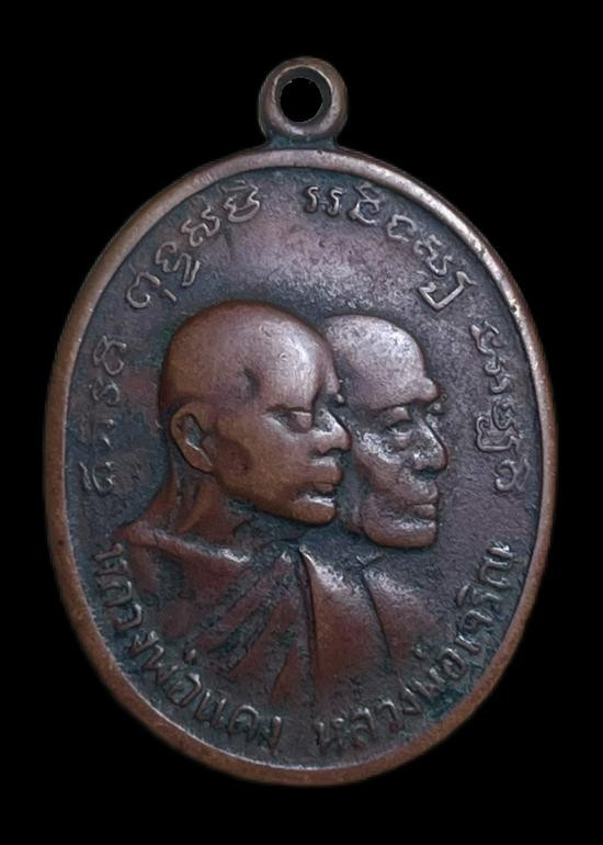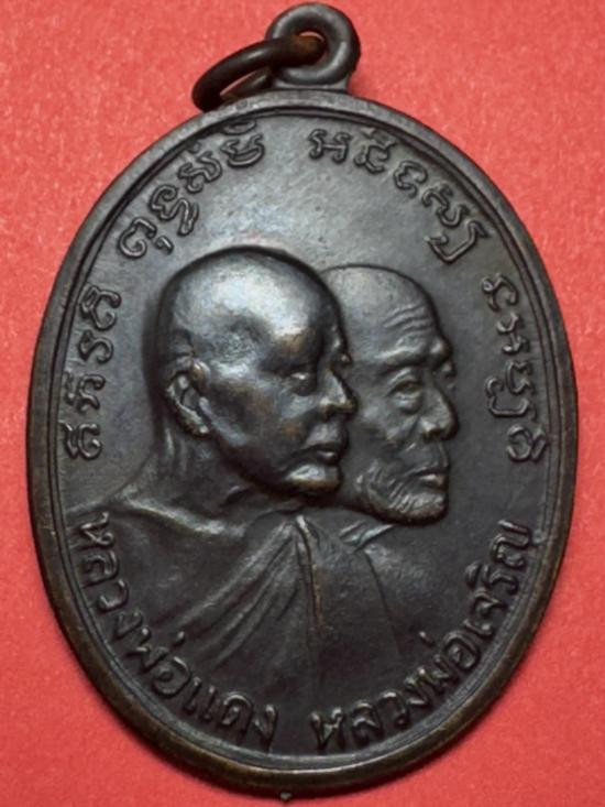 เหรียญสองพี่น้อง หลวงพ่อแดง-หลวงพ่อเจริญ วัวลาน ปี 13 เนื้อทองแดง สวยๆ ผิวเดิมๆ ดำๆ |