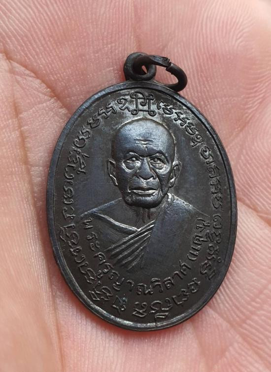 เหรียญเลื่อนสมณศักดิ์รูปไข่ครึ่งองค์ หลังพัดยศ เนื้อทองแดง หลวงพ่อตัด วัดชายนา 2551 |