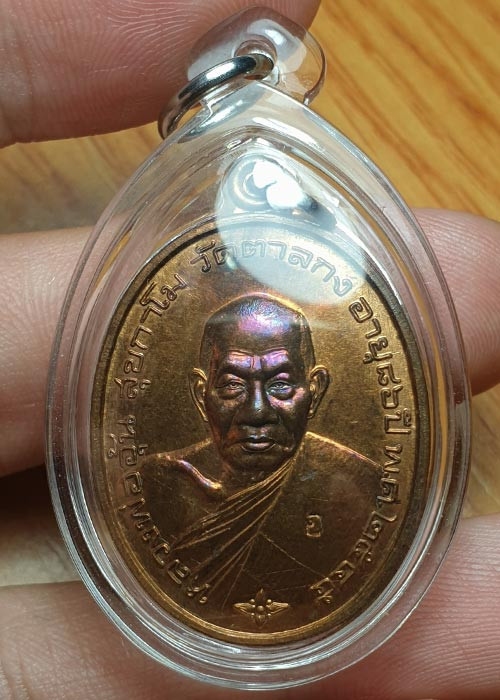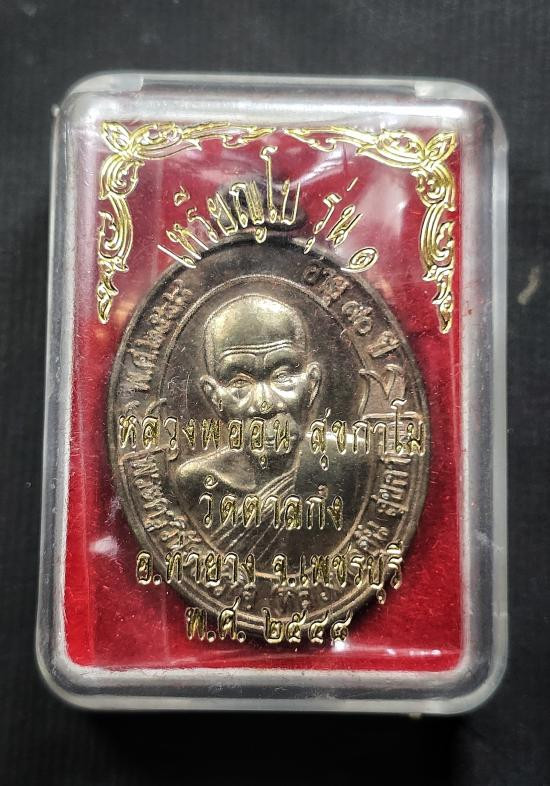 เหรียญมั่งมีทรัพย์ หลวงพ่ออุ้น สวยแดงผิวไฟ พร้อมเลี่ยมกันน้ำ |