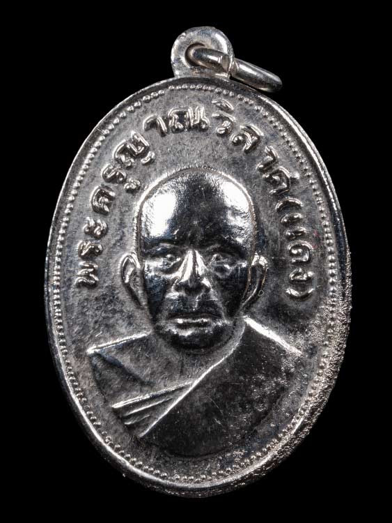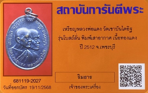 เหรียญหลวงพ่อแดง วัดเขาบันไดอิฐ พิมพ์แจกแม่ครัว(บ่ารางมีกลาก๗ติ่ง)เนื้ออัลปาก้าชุบนิเกิล ปี2508 จ.เพชรบุรี สภาพสวยๆพร้อมบัตรG-PRA |