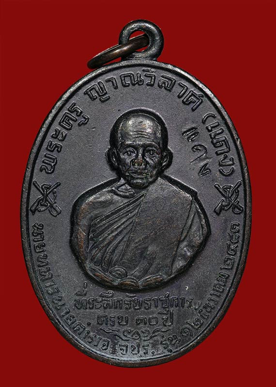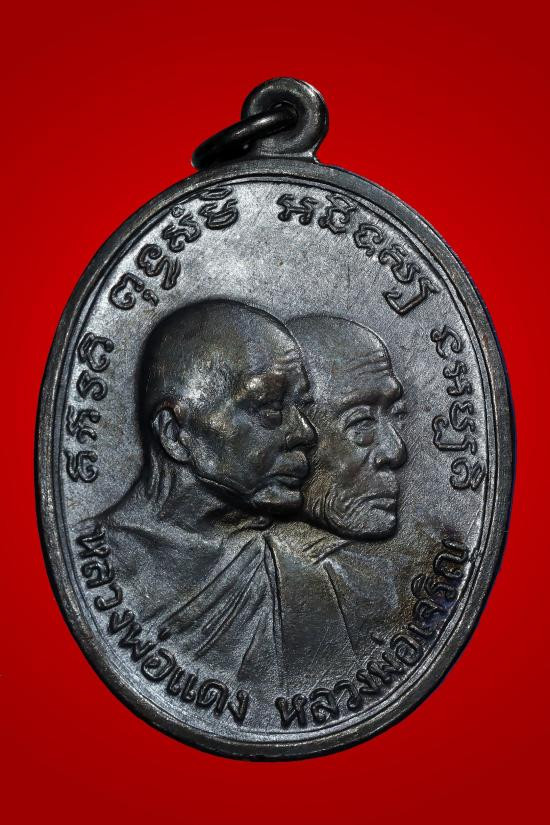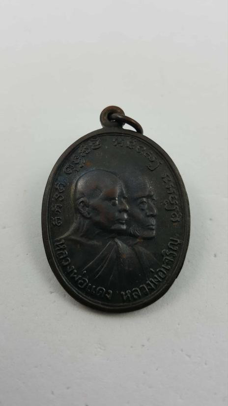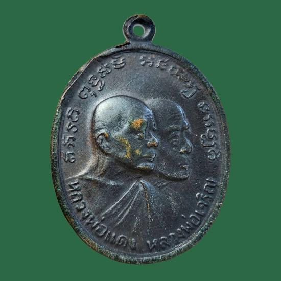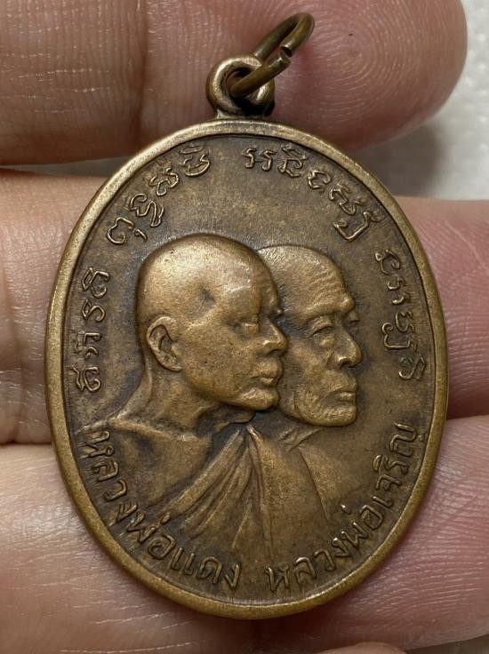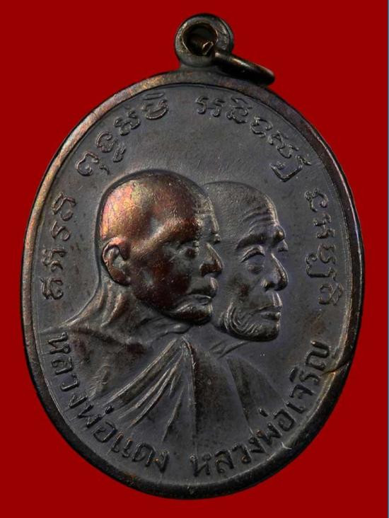เหรียญสองพี่น้อง หลวงพ่อแดง-หลวงพ่อเจริญ บล็อกวัวลาน ปี 13 เนื้อทองแดง |