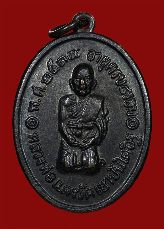 เหรียญคุกเข่า หลวงพ่อแดง เนื้อทองแดง รมดำ ออกวัดเขาบันไดอิฐ ปี 2517 สภาพผิวเดิมสวย |